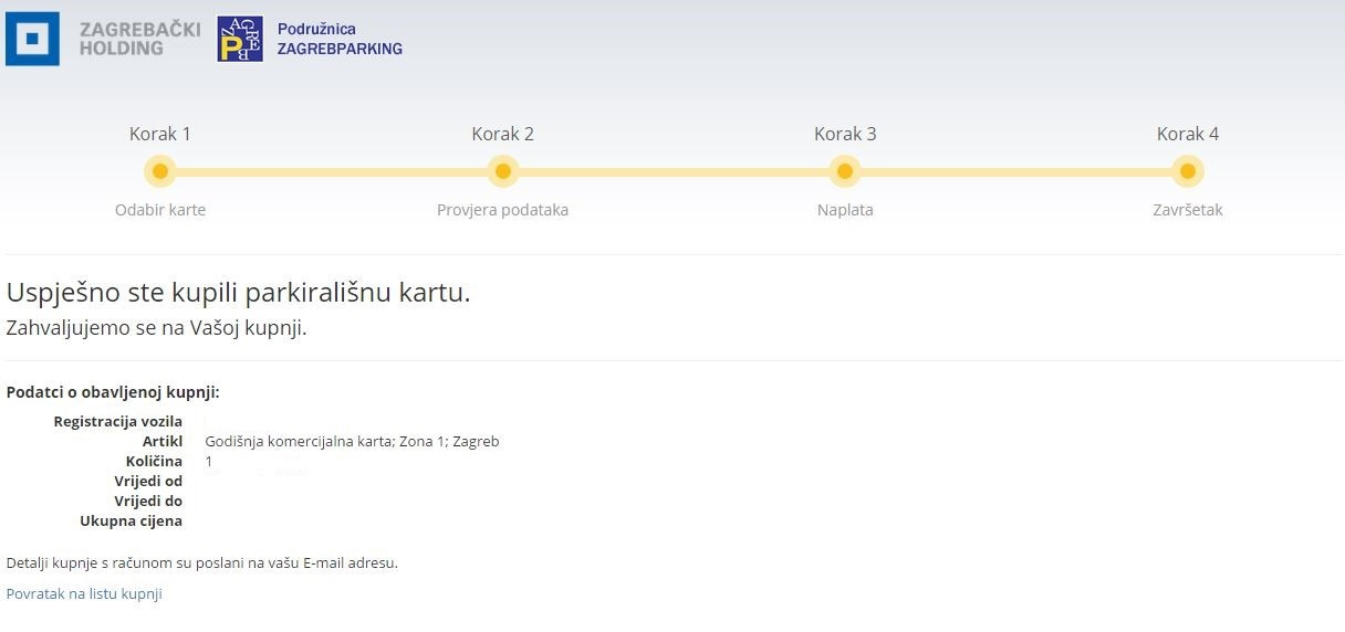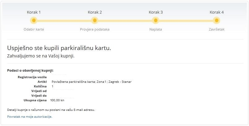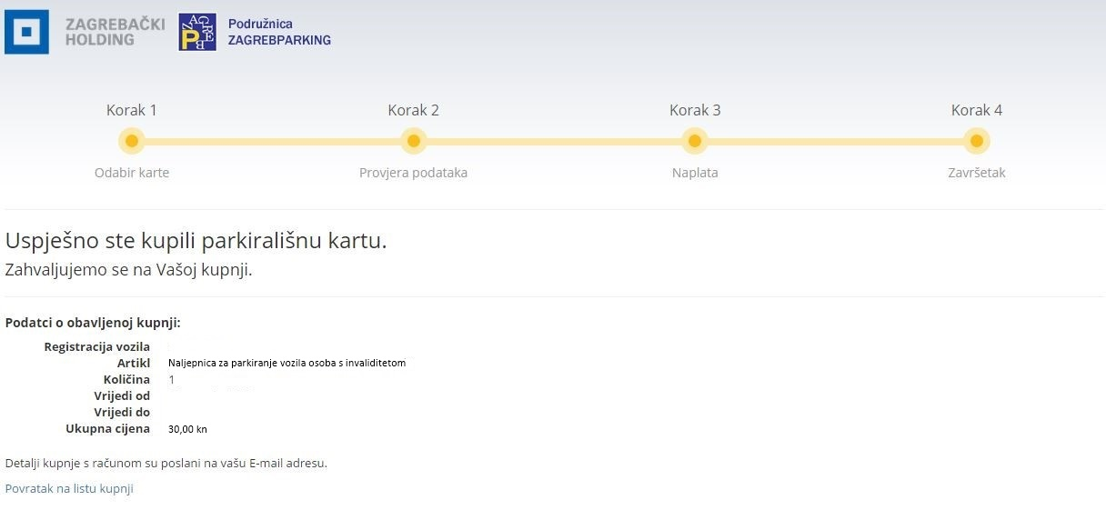 Na e-mail adresu dobit ćete potvrdu i račun o kupljenoj parkirališnoj karti za odabrano vremensko razdoblje.
