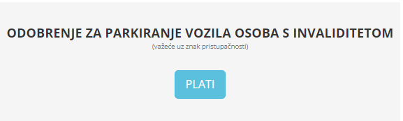 Na početnoj stranici ePK portala potrebno je odabrati opciju plati za „Plaćanje naknade za izdana odobrenja osobama s invaliditetom“.